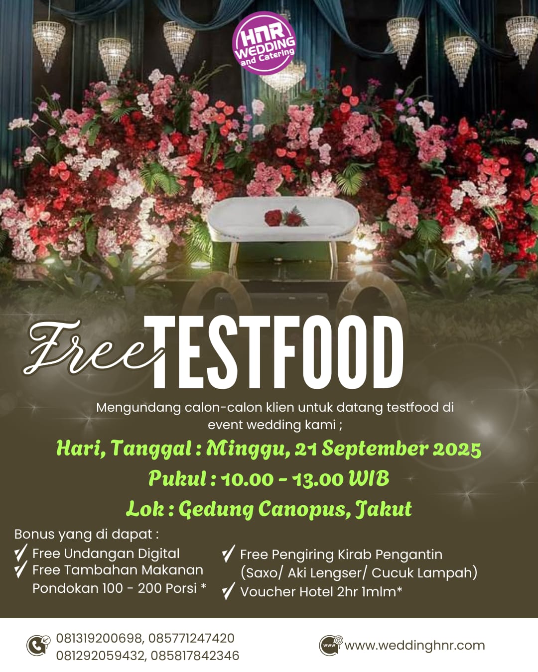 HNR Catering, merupakan perusahaan yang bergerak di bidang jasa per wedding an dan jasa catering.